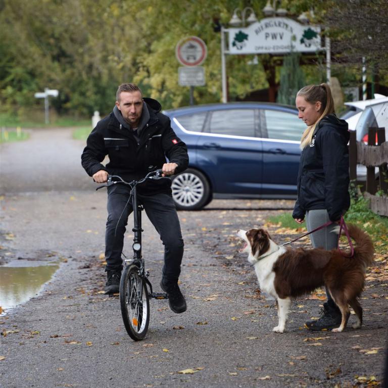 Danach ging es in den Verkehrsteil, wo bei der Begegnung mit Spaziergängern, einem Fahrradfahrer und Joggern, einem nach dem Weg fragenden Autofahrer, Ball spielenden und mit einem Hund spielenden Menschen neutrales Verhalten gefragt war. Auch in diesem Teil erreichten alle prima Punktzahlen, so dass am Ende alle eine Urkunde über die erfolgreiche Teilnahme ausgehändigt bekamen. Außerdem erhielten alle Hunde eine Belohnung und die Hundeführer zusätzlich eine Erinnerungsgabe. Erfreulich war, dass der Wetterfrosch größtenteils Sonnenschein zu diesem schönen Tag beisteuerte, an dem die Teams wieder einmal im Verkehrsteil zeigten, dass sie durch fast nichts aus der Ruhe zu bringen sind und alle Situationen, denen man auch im Alltag begegnet, souverän meistern. So ging nach einem herzlichen Dank an die Helfer und an die Leistungsrichterin für das faire Richten eine schöne Prüfung zu Ende.